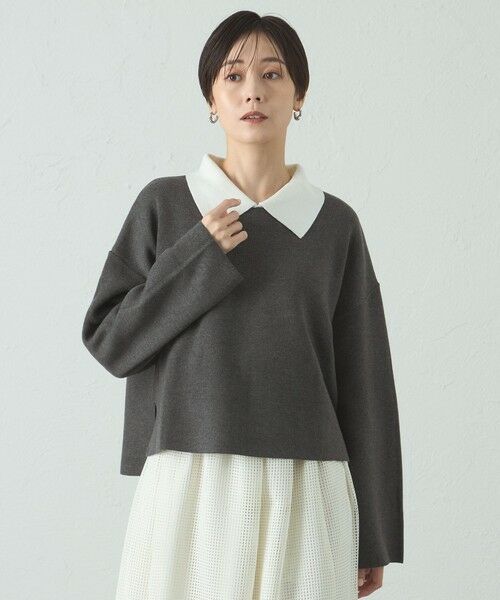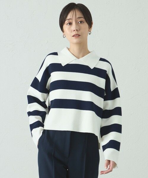 ジャガード組織のしっかりとした編地で、身頃はボクシーなシルエット。キレイめなトレーナーのような感覚でお召し頂けます。