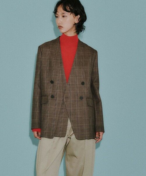 前立てが2枚重なったようなトロンプルイユデザインのチェック柄ジャケット。