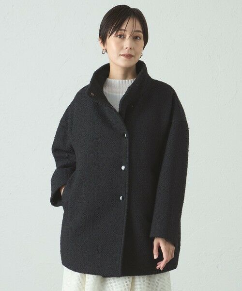 【CAST:キャストコロン 2025年秋冬アイテム】【Design】スタンドカラーのツイードミドルコート。暖かみのあるツイード生地が目を引きます。高めのスタンド衿とドット釦でモードな印象に。中綿入りで、丈もヒップまで隠れるので防寒性も抜群です。【Fabric】独特なツイード素材に現代的な軽やかさを兼ね備えた、ウール混ツイード素材。大きめのヘリンボン柄が印象的で、冬のコート素材として存在感を放ちつつ、過度に派手にならない絶妙なバランスを実現しています。【Styling】ワイドパンツやロングスカート、ワンピースとの合わせがおススメです。●洗濯:手洗い不可透け感:なし伸縮性:あり生地の厚さ:厚いおすすめ着用期間:秋、冬※この商品はサンプルでの撮影を行っています。実際の商品とイメージ、サイズ、品質表示、原産国等が異なる場合がございます。※店頭及び屋外での撮影画像は、光の当たり具合で色味が違って見える場合があります。商品の色味は、スタジオ撮影の画像をご参照ください。