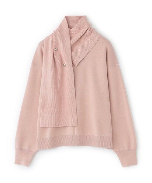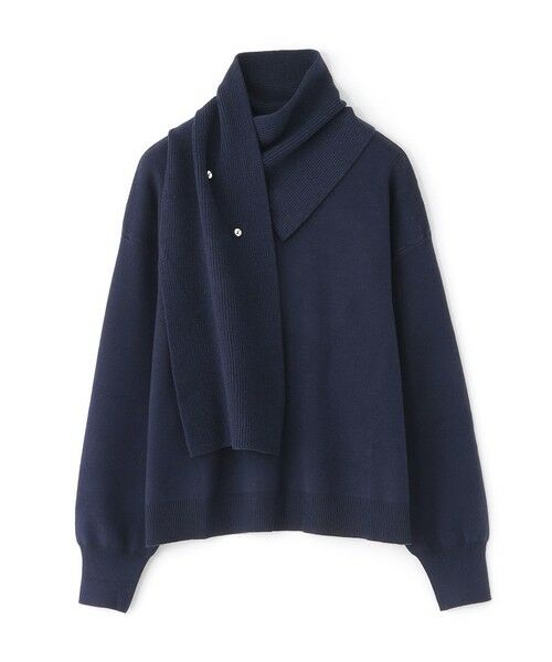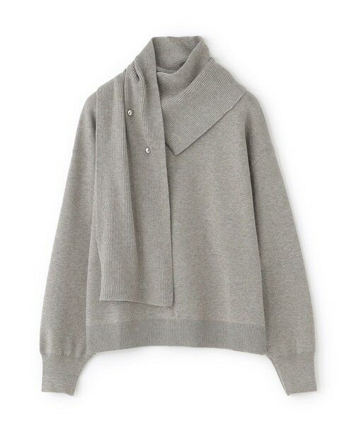 マフラーをドッキングしたデザインが目をひくニットプルオーバー。
