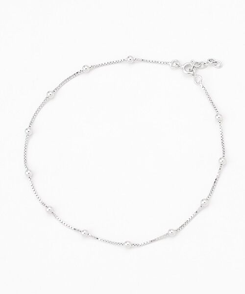 小さなボール型のパーツが等間隔に施されたシンプルなデザインのチェーンのアンクレット。足元をおしゃれにスタイルアップ!