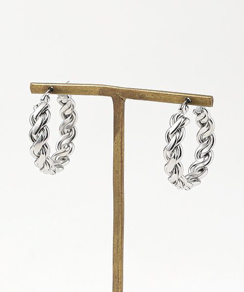 ロープ編みのようなデザインが施されたフープピアス。形自体はシンプルなので使いやすい上、耳元のアクセントとしてお楽しみいただけます。