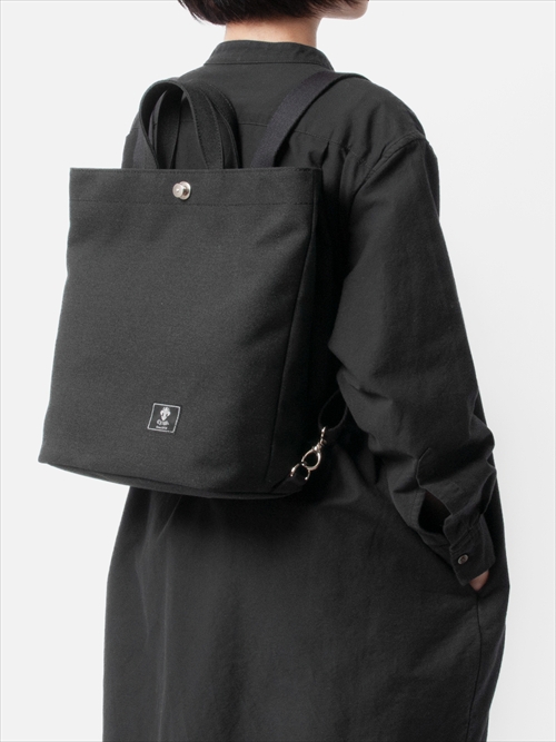 GRS(Global Recycled Standard)認証のリサイクルポリエステルを使用したBACKPACK。A4ファイルが縦にすっぽり入ります。ショルダーストラップをバッグ内に収納するとトートバッグとしても使用できます。バッグの留め具には耐久性があり美しいデザインのドイツホックを採用。日本製