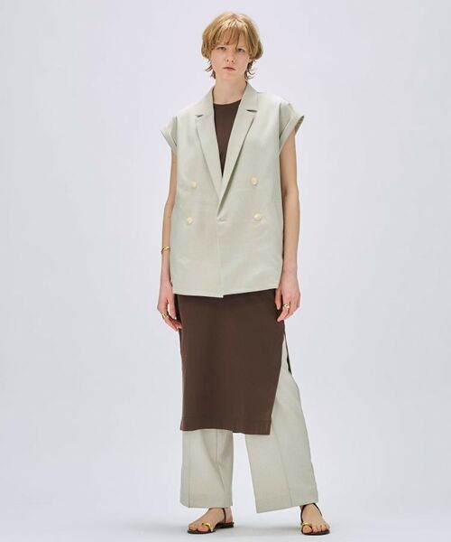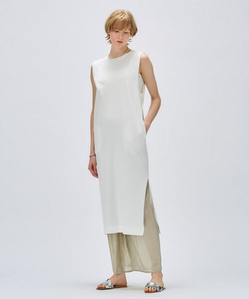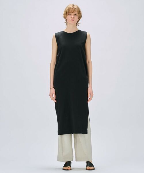・着回しのしやすいシンプルなノースリーブのデザイン。