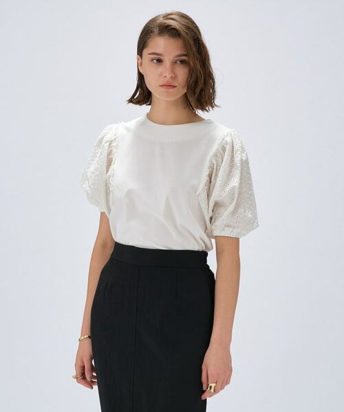 ・袖部分には軽やかなレース素材を使用し、エアリーで涼やかな雰囲気を演出。