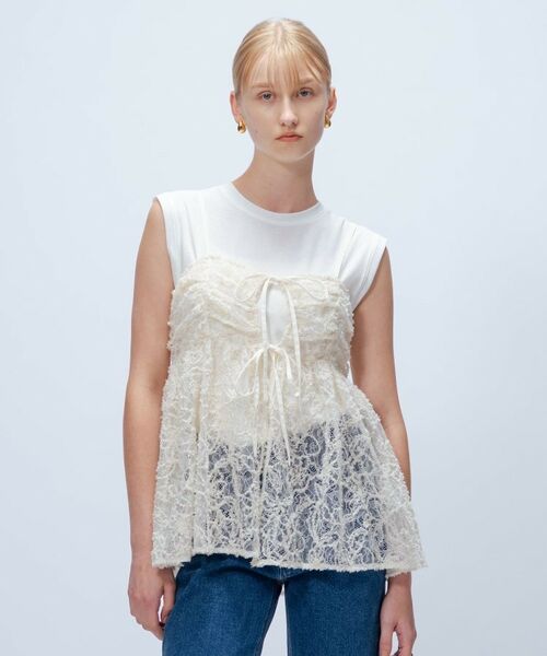 ・繊細で華やかなレースを贅沢に使用したキャミソール。
