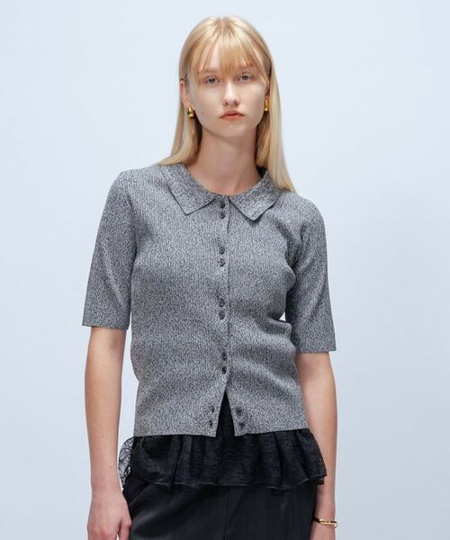 ・ツイード風の素材感が上品でクラシカルな印象を与えるニット。