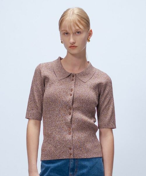 ・特徴的なボタンデザインとトレンド感のあるポロ衿がアクセントに。