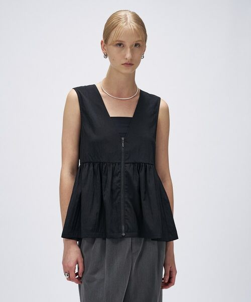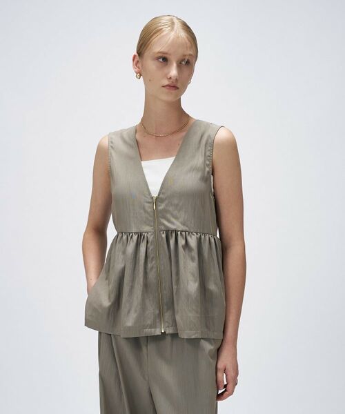 ・ウエスト切り替えから広がるペプラムシルエットが女性らしい柔らかさを演出。