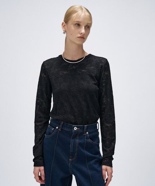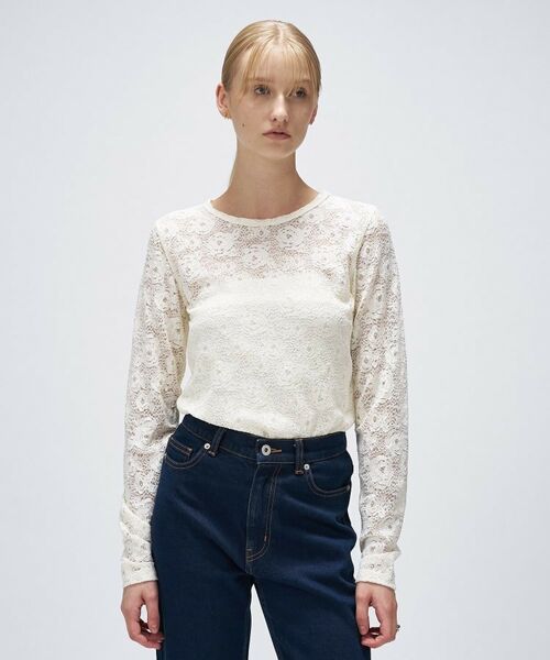 ・レース柄が甘すぎず、透け過ぎないので大人も気兼ねなく一枚で着こなせます。