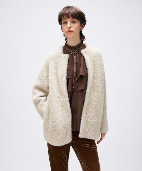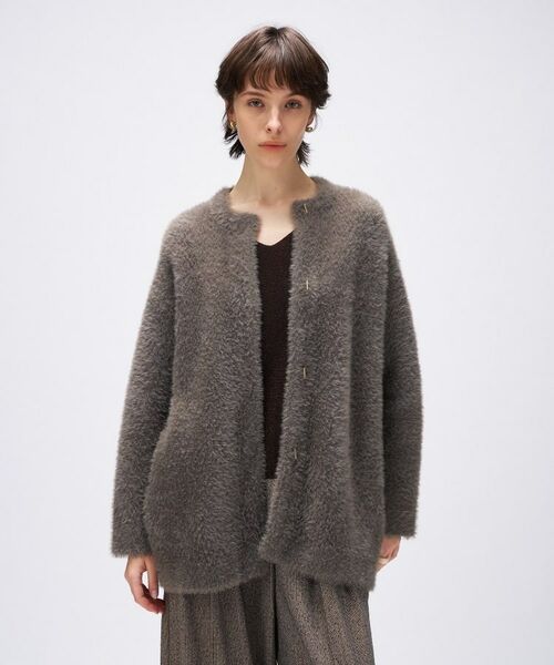 ・柔らかい風合いのシャギー素材を使用した、ふんわりと軽やかな着心地のカーディガン。
