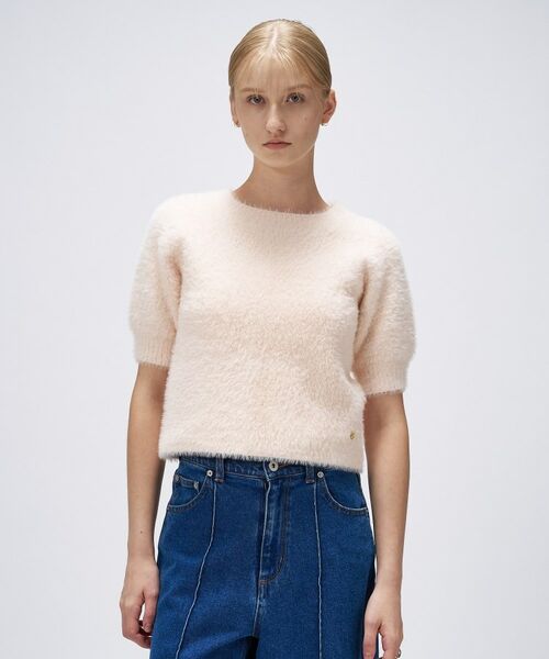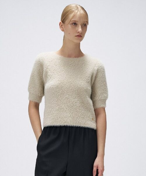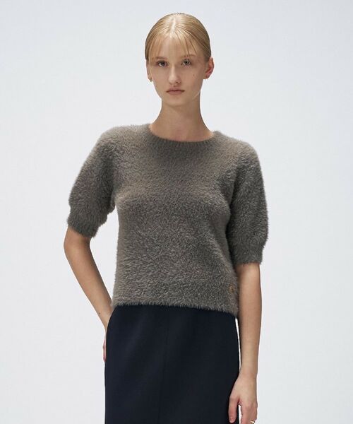 ・柔らかい風合いのシャギー素材を使用した、今季らしい5分袖ニットプルオーバー。