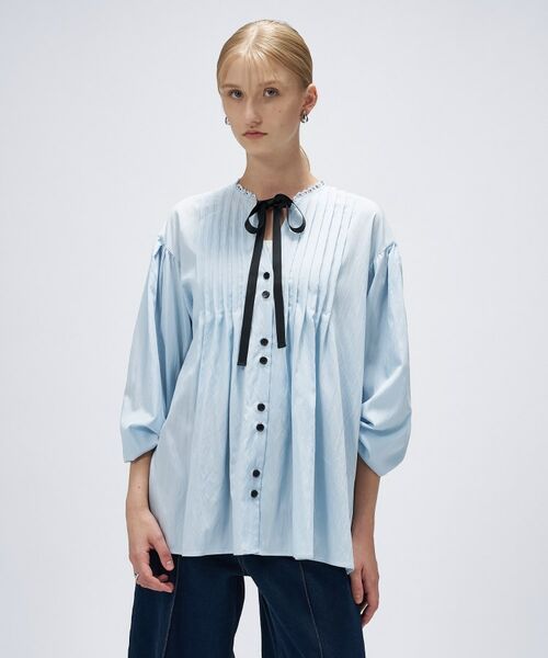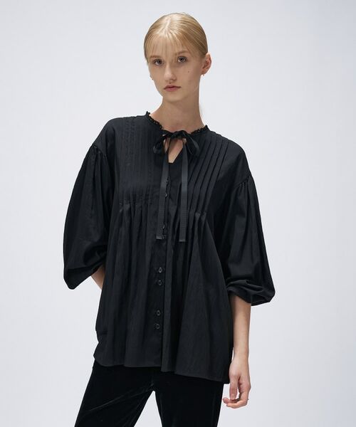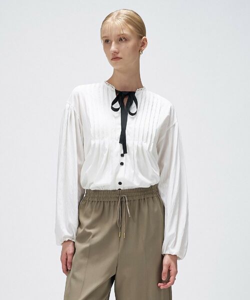 ・たっぷりとした袖のボリューム感と、華奢なリボンタイが上品さを引き立てるブラウス。