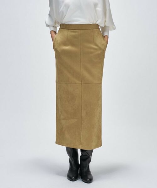 ・スカートは裾に向かってすとんと落ちるストレートラインで大人の女性にぴったりのバランスに仕上げた一着。