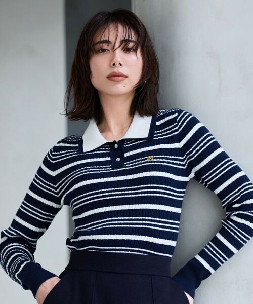 ・一枚で旬な着こなしを楽しめるマルチボーダーニット。