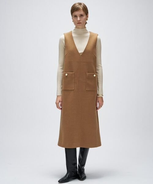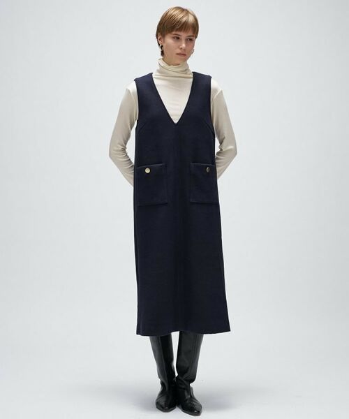 【手洗い可】メルトンジャージVネック ジャンパー スカート