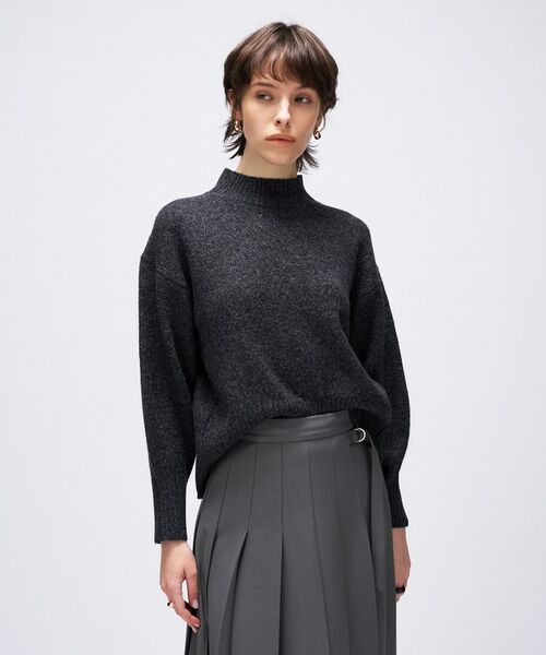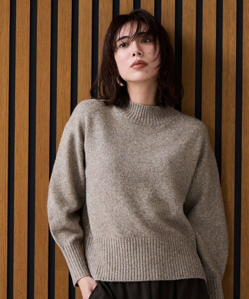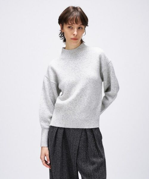 ・繊細なラメ混素材を使用したハイネックニットで、シンプルながらも大人の上品さを演出します。