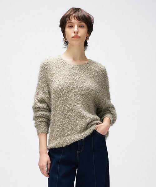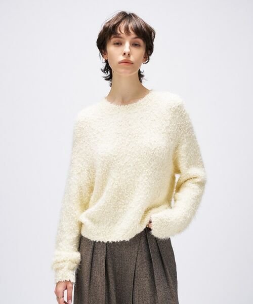 ・ポップコーンのようなぽこぽことした表面感が魅力のフェザーヤーンニットプルオーバー。