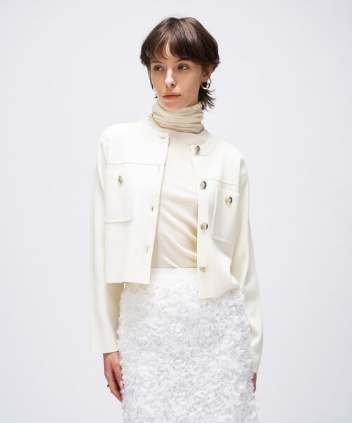 ・短めの着丈でスタイルアップが叶う、オケージョンシーンに活躍するきれいめカーディガン。