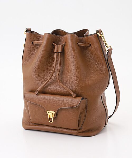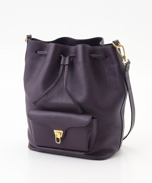 コチネッレ Beatはブランドの象徴的なラインの一つです。アイコニックな金具のついたフラップクロージャーはこのコレクションのためにより洗練されたものになりました。レザーショルダーストラップ付きのマキシバケットバッグは、2通りの持ち方が可能で、ストラクチャーと柔らかさ、実用性と現代的なデザインが絶妙にミックスされています。 専用機で革を加工した後、転がして柔らかさを保ちます。 非常に丈夫で掃除しやすい革なので、日常的な使用に最適です。