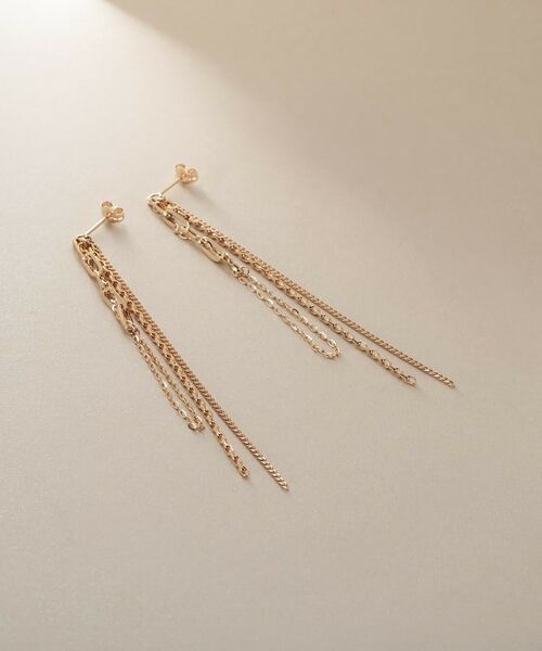 4種類のチェーンを組み合わせたフリンジピアス。