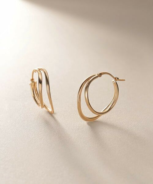断面が変化するカーブラインが耳元にインパクトを与える中空ダブルフープピアス。