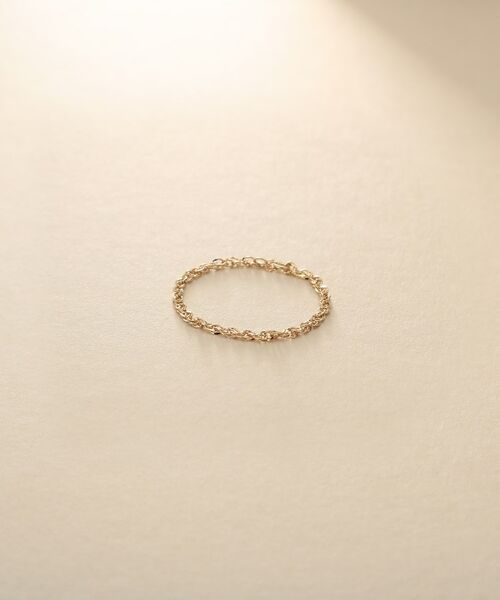 ねじれたデザインが特徴的なチェーンのリングは、ゴールドの素材の持つ美しさが際立つシンプルなデザイン。