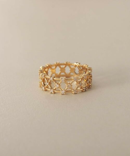 レース状のデザインにダイヤモンドを施した華麗なシルエットが巧みな技を感じさせるリング。