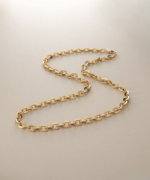 フラットなアズキチェーンが首元に存在感を与える中空フラットアズキチェーンのネックレス。