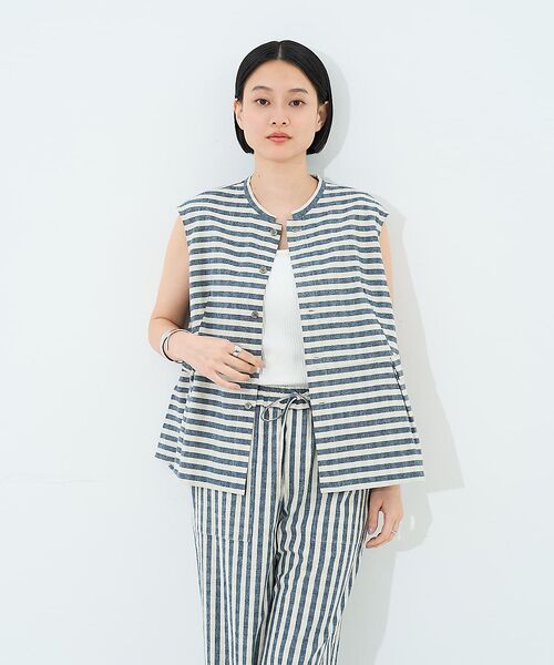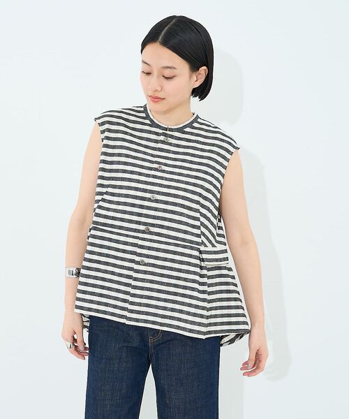 夏らしいコットンリネンのノースリーブブラウス。