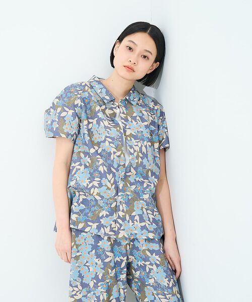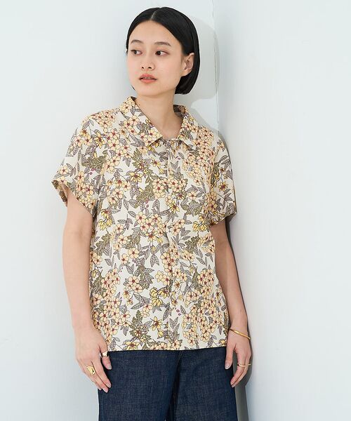 《POINT》コンパクトなサイズ感が女性らしいアロハ調ブラウスです。正面はシンプルなコンパクトシャツに見えますが、袖が後ろに向かってフレアに繋がり表情のある横、後ろ姿に◎前開きでTシャツなどに羽織って着たり、デニムにインしてプリントを活かしたコーディネートもオススメです。同素材のパンツとセットアップでも着用していただけます。イエロー モデル:H163 B80 W59 H88 着用サイズ:Fネイビー モデル:H163 B80 W59 H88 着用サイズ:F