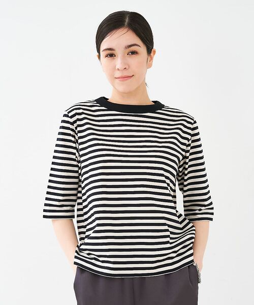 カラー展開はホワイトとブルー以外に、コーディネートのアクセントになるボーダー柄をお作りしました。