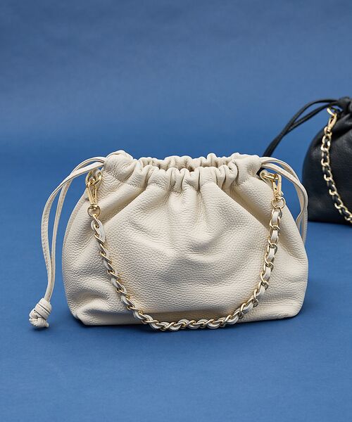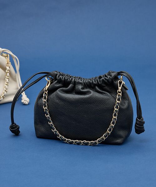 トレンド感のある巾着型フォルムにチェーンハンドルがポイント。