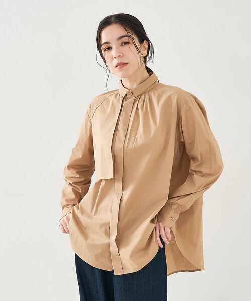 1枚着はもちろん、羽織り感覚でさらっと羽織れば、トレンチコートの胸元フラップのような雰囲気が楽しめます。