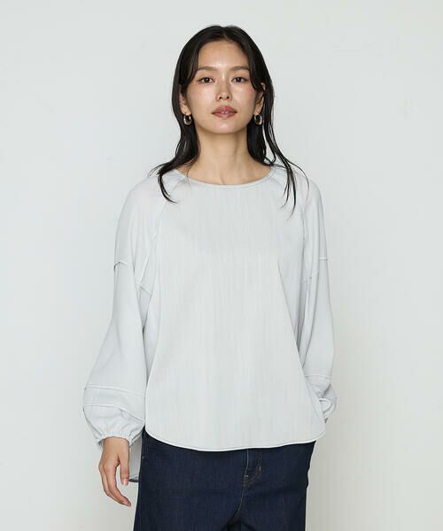 デニム調ブラウスを袖コンシャスで華やかに表現しています。