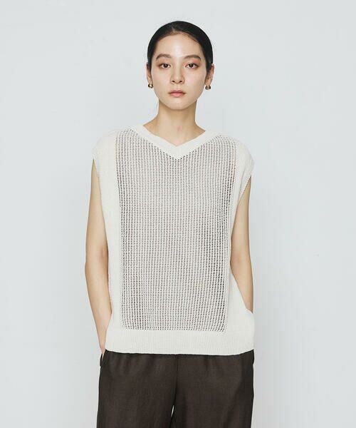 脇付近は透けない編地に切り替えることでIライン見えするので、スタイルよく着こなせます。