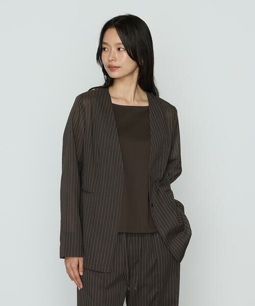 幅広のストライプにより、シャープで凛としたコムサらしいジャケットです。