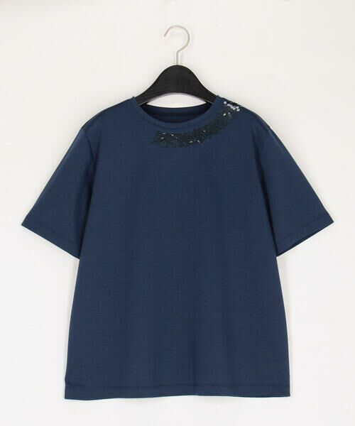 襟元にスパンコール刺繍をあしらったTシャツです。