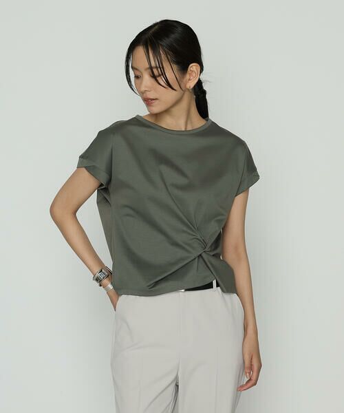 フレンチスリーブの袖口は花びらのように重ねた仕様でフェミニンさをプラスしています。