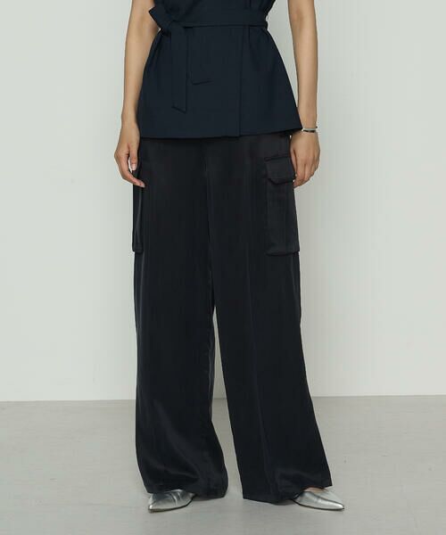 シルクの様なつや感のある生地でつくるワイドシルエットカーゴパンツです。