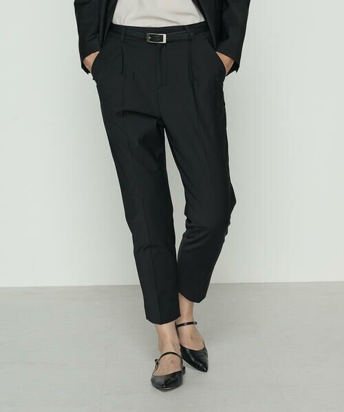 前側はタック+センタープレスでたてのラインを強調しさらに脇線を少し前に振ることで、