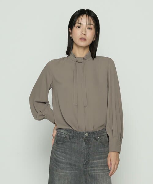 シンプルなハイネックとエレガントなタイスタイルの両方が楽しめるタイ付きハイネックブラウスです。