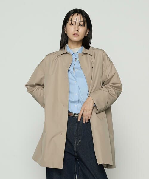アウターデザインはシルエット映えするテントラインが魅力のステンカラーコートです。