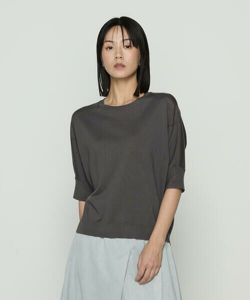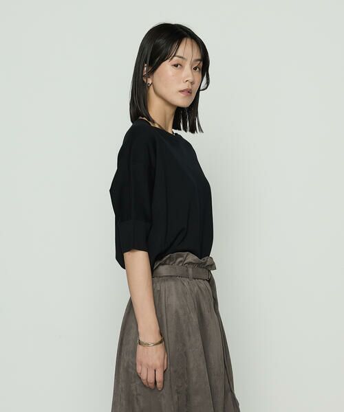 伸縮性のあるニット素材でしわにならず、Tシャツ感覚で手軽に着ることができるニットとカットソーの良い部分を併せ持った、とても汎用性の高いアイテムです。