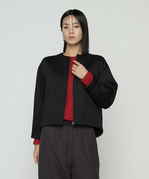 《デザイン》丸みのある立体的なシルエットのブルゾンです。いつものダンボールよりもハリコシのある素材で、よりシルエットにこだわっています。顔色を明るく見せてくれるミストブルーは暗くなりがちなA/Wのコーディネートのポイントになる今季コムサのおすすめカラーです。きらりと光るファスナーや細長くデザインしたポケットもシンプルなデザインのさりげないポイントです。《素材》ポリエステルスパンを使用したダンボールニットです。ドライタッチになるよう紡績をした糸を使用することで、より綿のような風合いに仕上げています。ハリ感とふくらみのある素材なので、軽やかでシルエットがきれいにでる素材です。