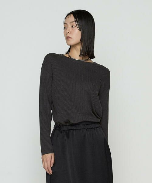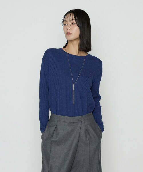 クルーネックのすっきりした襟ぐりでジャケットやコートのインナーとして便利に着回せます。
