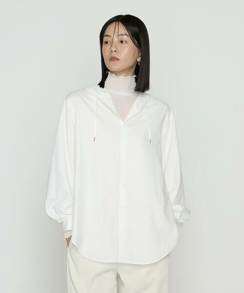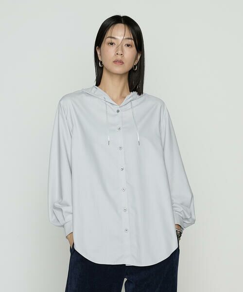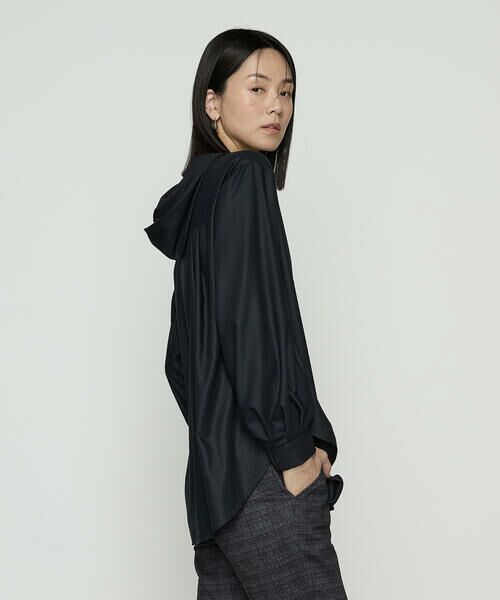ドレープ性のある女性らしい素材で仕立てた、ギャバジンKTの定番アイテムでもあるフード付きブラウスです。