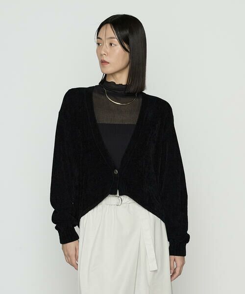 ベルベットのような美しい光沢と思わず触れたくなる、ふんわりもちっとした手触りが魅力のマシュマロニットショートカーディガンです。