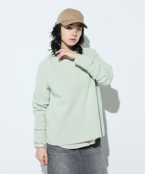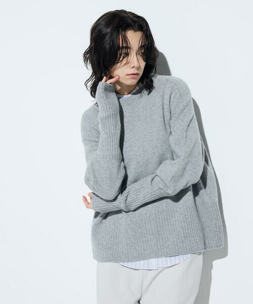身頃と袖が編み続きになり、縫い目のないホールガーメントの製法で編み立てているので、ごわつき感なく快適な着心地で、長めの袖がこの時期の冷えを防いでくれる嬉しいポイントです。
