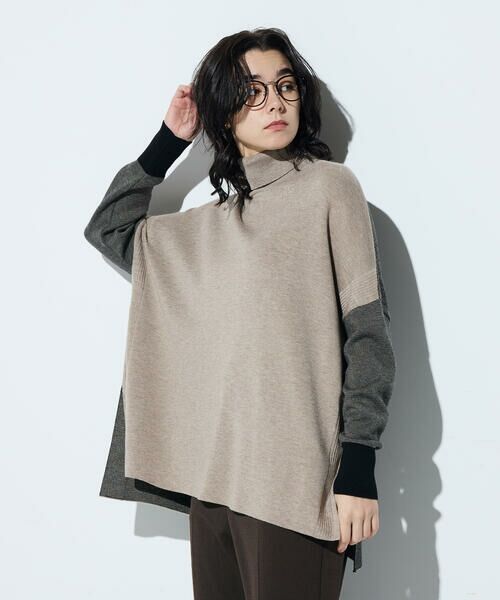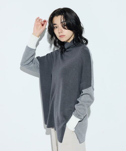 《デザイン》前後で無地とめくら縞ボーダーをミックスしたバイカラーニットです。正面から見た時と後ろから見た時の印象が変わる一枚で存在感のあるタートルプルオーバーです。ジップカーディガン(商品番号:34-59IM16-205)同様のスムース編みで滑らかな質感の編地で、タートルネックでもチクチク感なく着られます。オーバーシルエットの身幅と細身の袖でメリハリをつけたデザインで、コートのインナーにもおすすめの一着です。《素材》ウール低混率ながらもセミ梳毛紡績でつくられているので適度に膨らみがあるのが特長の糸です。細い糸で肌触りが良く、柔らかさと滑らかさのある糸になります。